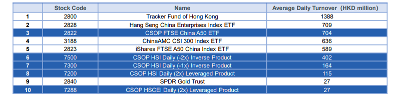 Top 10 Actively Traded ETFs/ETPs in Hong Kong